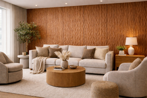COT 004.5 is a repeating, continuous panel pattern with a 0.23” depth on a 0.75” thick panel. The pattern repeats every 12” perpendicular and every 48” parallel to the pattern direction, creating a controlled and structured surface rhythm. Standard panel size is 48” × 96”, with custom sizes available. Panels can be force matched to ensure precise seam alignment when a panel layout is submitted. Pattern direction may be specified vertically or horizontally.